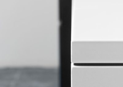 Puertas y frente de cajón en DM lacado de espesor 19mm. Tiradores integrados en los laterales.